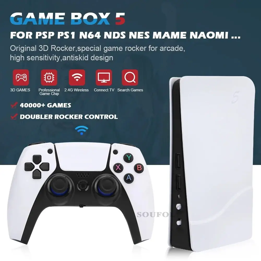 The newly designed GameStation 5 has more than 30,000 old skool games on it, It supports wireless controllers and contains all kind of games from PS1, N64 up to GBA, SEGA and even Dreamcast. The GameStation has a output of 4K to make you really enjoy Beautiful oldskool gaming.